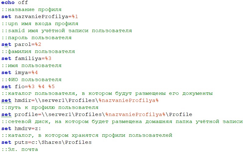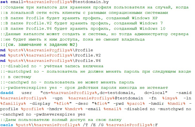 С помощью команд из данного файла будут создаваться каталоги для хранения профилей пользователя, создаваться пользователь, назначаться права на домашнюю папку.