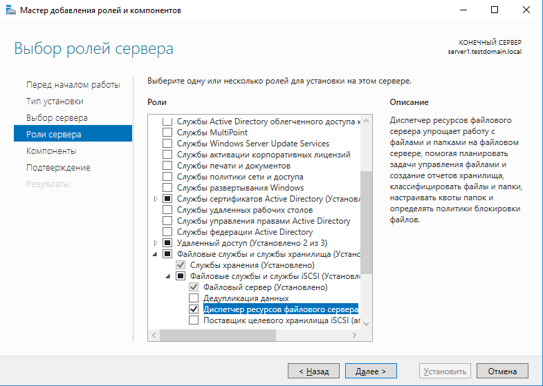Рисунок 1.1 – Установка диспетчера ресурсов файлового сервера