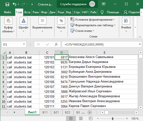 Рисунок 3.1 – Возможный вариант электронной таблицы для подготовки файла students.bat