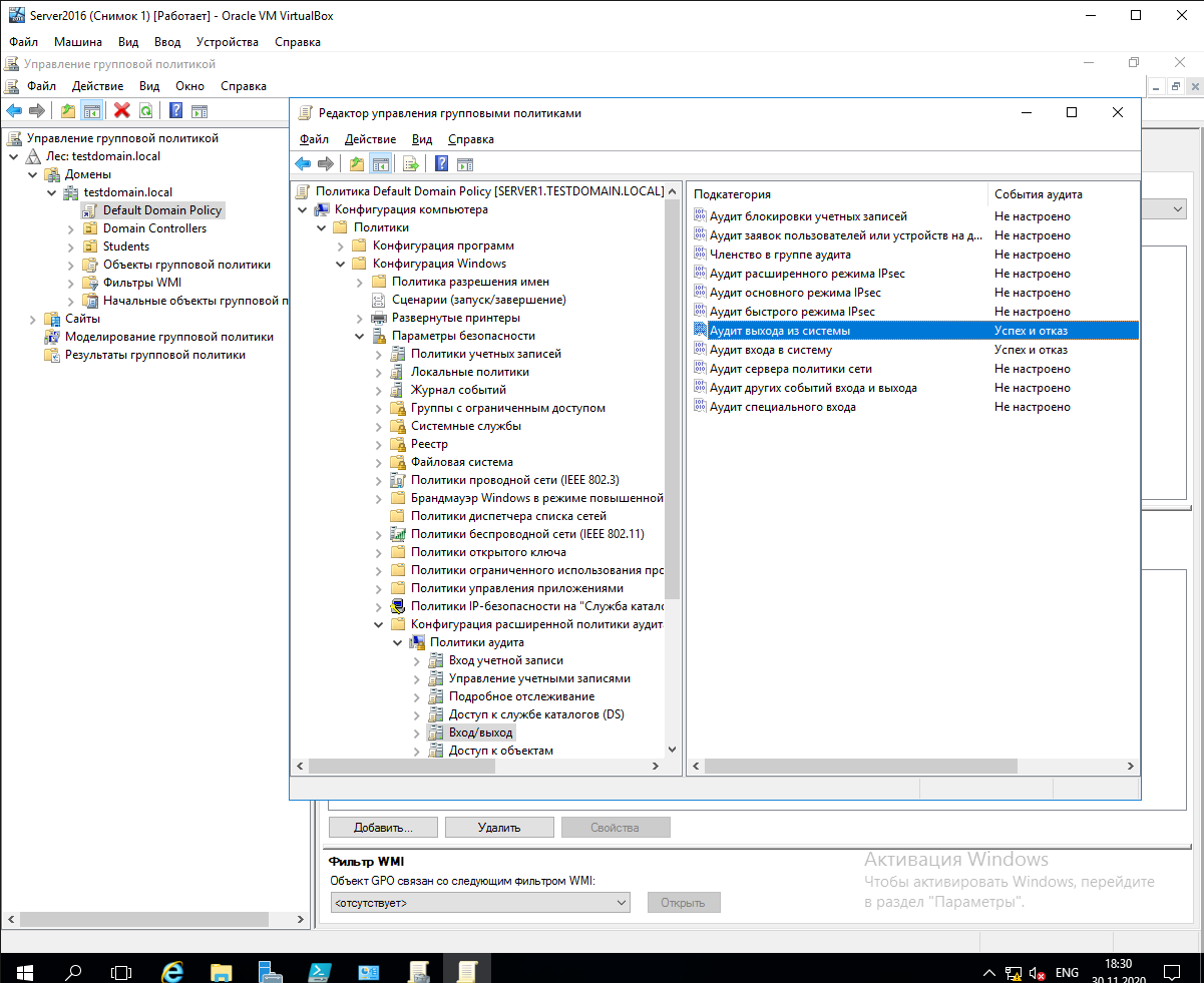 Рисунок 3.1 – Настройка аудита входа в систему и выхода из системы