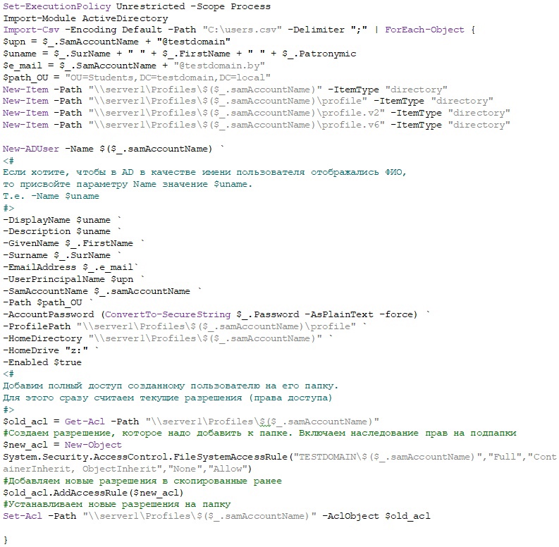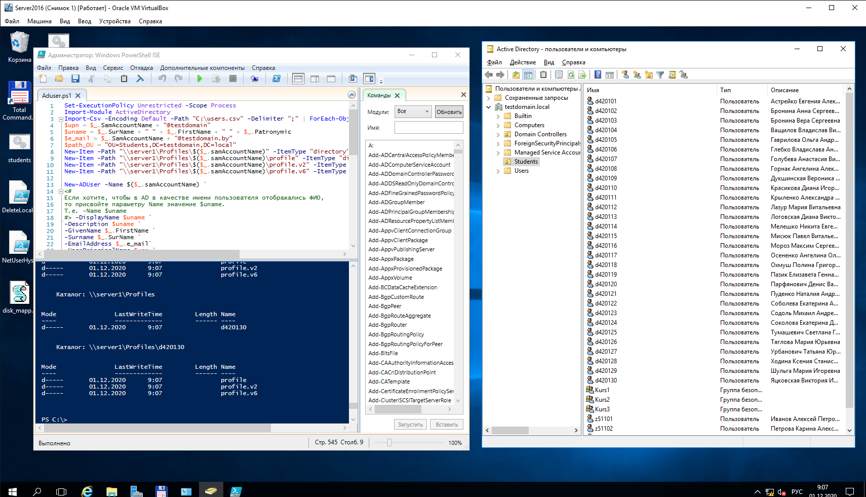 В лабораторной работе №4 вы познакомились с методом создания учетных записей и профилей пользователей средствами командной строки. Вместе с тем, работать с *.bat-файлами не совсем удобно, так как зачастую возникают проблемы с кодировкой кириллицы, и подготовка *.bat-файлов занимает определенное время.