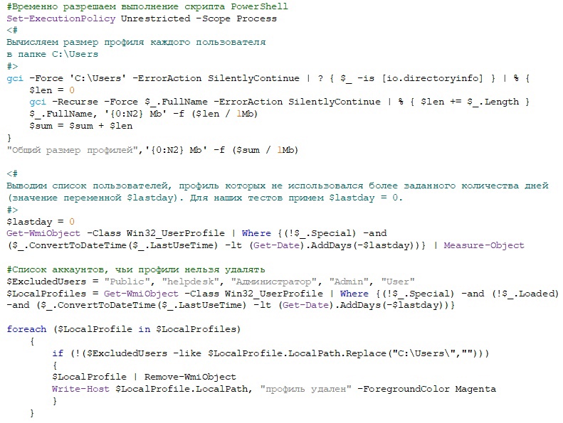 Рисунок 2.3 – Удаление локальных копий профилей средствами PowerShell
