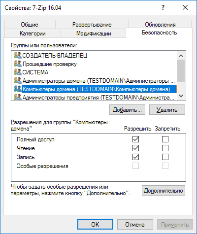 Рисунок 2.3 – Установка разрешений для компьютеров домена