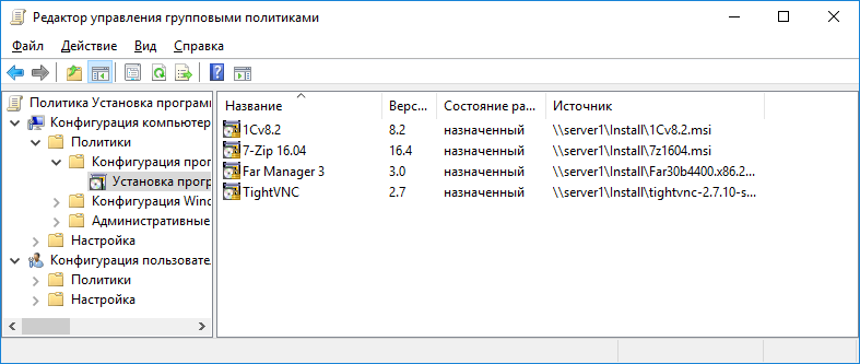Рисунок 2.8 – Результат установки программного обеспечения через gpo