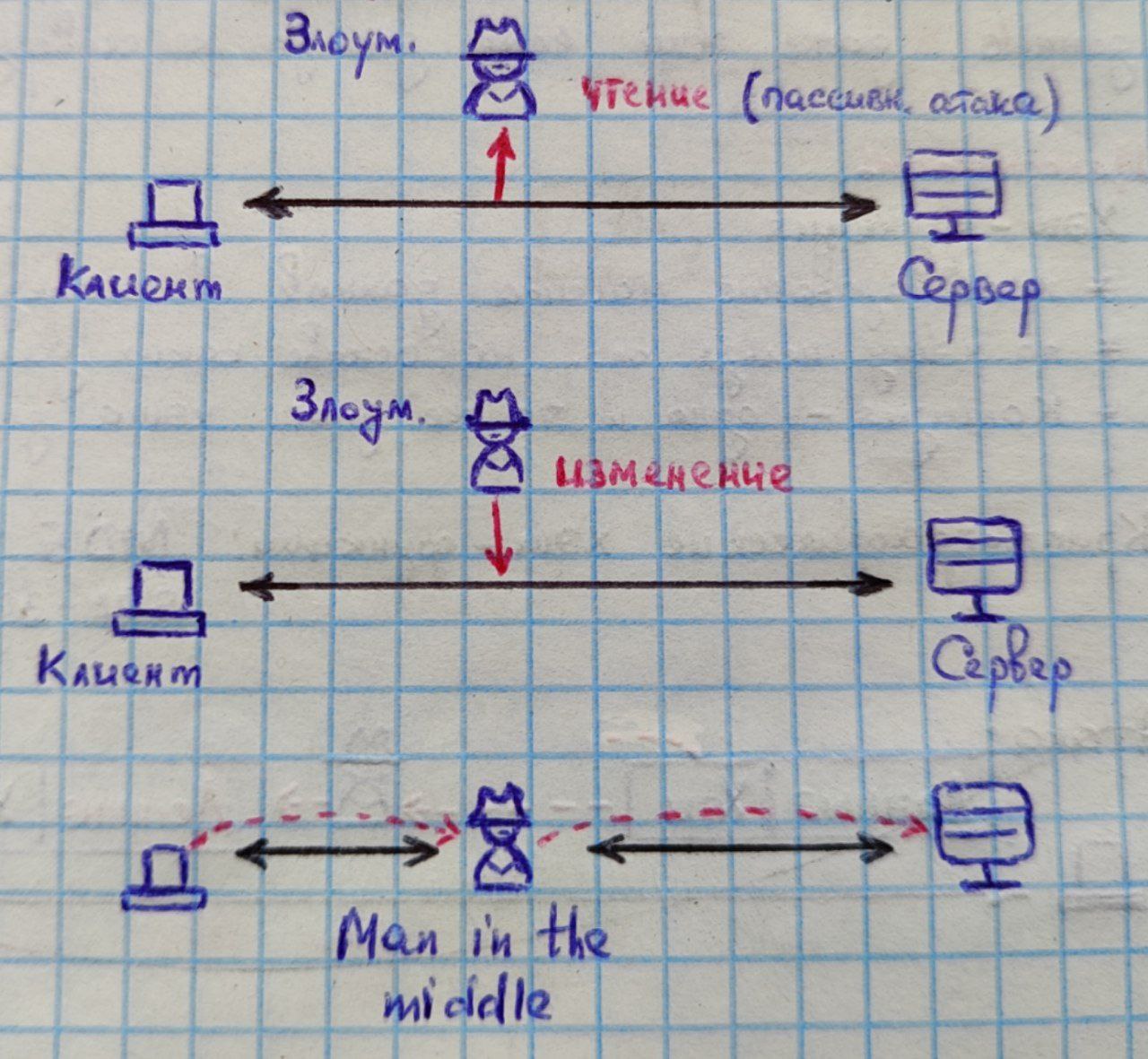 – нет возможности подтвердить подлинность сервера. При атаке «Man in the middle» на этапе обмена ключами (по алгоритму Диффи-Хеллмана) злоумышленник может перехватить процесс обмена и выслать клиенту свой ключ.