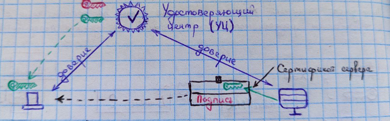 – если клиент доверяет УЦ, то у него есть открытый ключ УЦ, которым он может расшифровать подписанное сообщение.